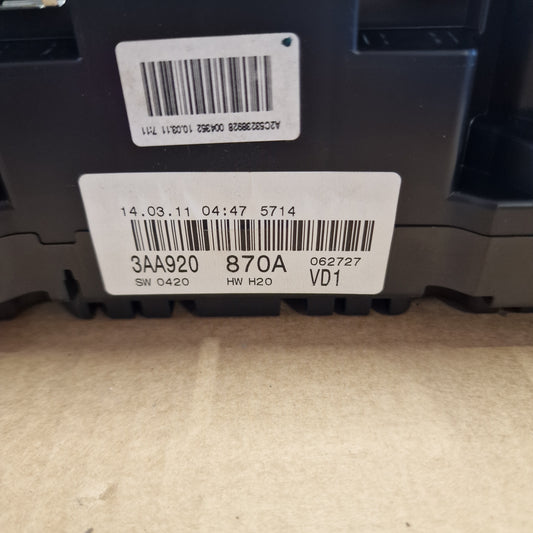 Mittaristo täydellinen, Volkswagen Passat B7 Variant 365 1.6 TDI diesel 2011, 3AA920870A